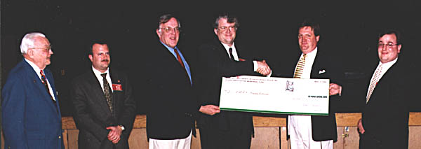 ![]() Officials of the Schenectady Amateur Radio Association present a symbolic check for $100,000 to create The Henry Broughton, K2AE, Memorial Scholarship. Shown, l-r, are Broughton Estate executor Jim Pontius, W2CPB; ARRL Hudson Division Vice Director J. P. Kleinhaus, W2XX; ARRL Hudson Division Director Frank Fallon, N2FF; ARRL New England Division Director Tom Frenaye, K1KI (representing the ARRL Foundation); SARA President John Domblewski, N2OJY, and SARA Treasurer Dennis Hudson, N2LBT. |